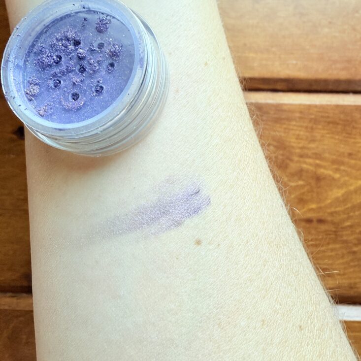 Honestly, I thought November would include some copper or deeper autumn-toned makeup, but I was pleasantly surprised to find a pan of cruelty-free and vegan purple mystical eye dust. This product has a soft, dusty-purple hue that’s nicely buildable and includes a touch of shimmer. While it initially gave me spring vibes, once I paired it with silver and brown shadows in my crease, I really appreciated the pop of color and enjoyed the subtle glitter. I used it both as an eyeshadow and underneath my lashes as a liner, and I know this is a look I’ll be wearing often.