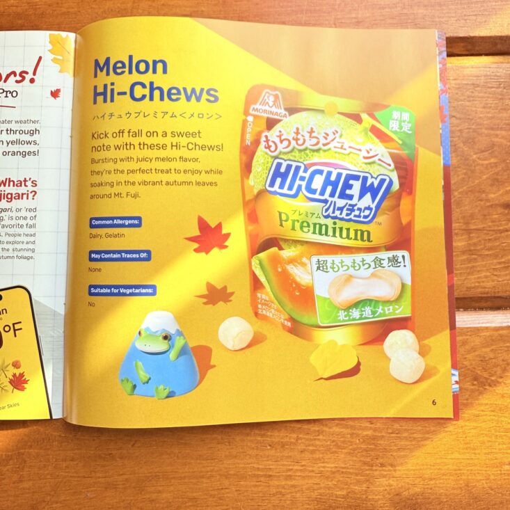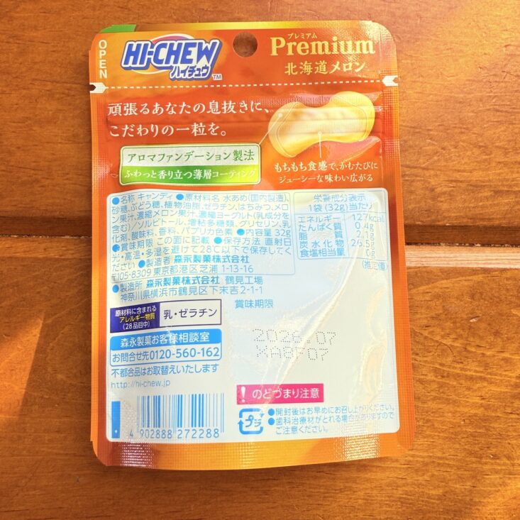 I’ve mentioned before that every single TokyoTreat box I’ve ever received has included a special variety of KitKat bars. This month, however, we didn’t get any—and I have to admit, I’m a little sad! Instead, we received a medium-sized package of Premium Melon Hi-Chew candies. They were delicious, but it just wasn’t the same. My kids really enjoyed the chewy, real-melon flavor of the Hi-Chews, though they were a bit disappointed not to have a fun KitKat bar to try. Maybe next month they’ll be back—fingers crossed!