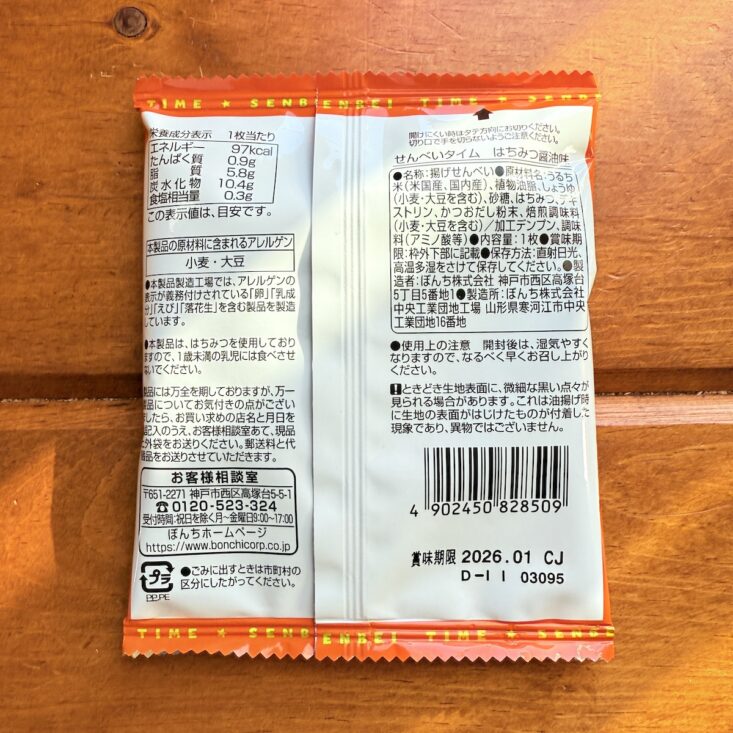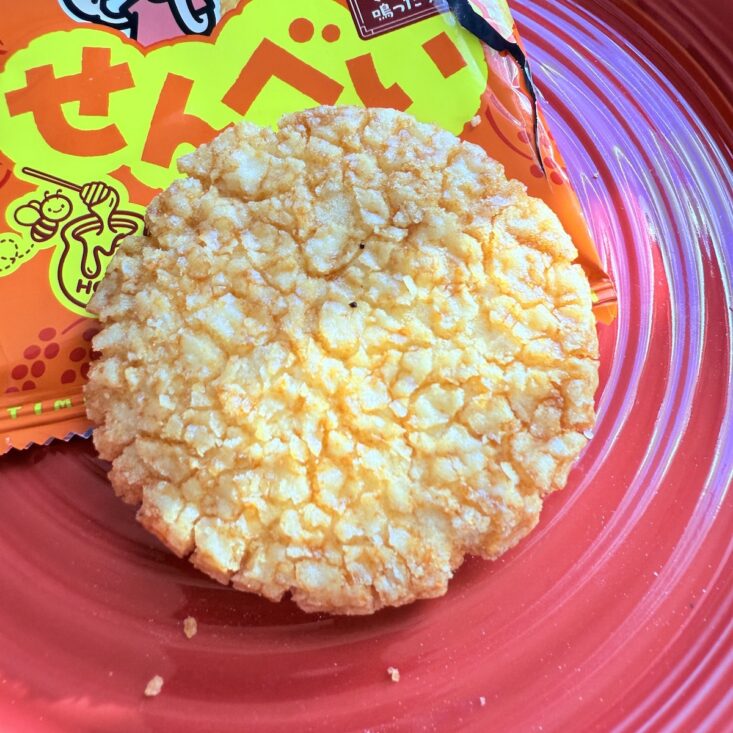 The next item we received was a medium-sized honey soy sauce cracker that looked a bit like a rice cake but packed a serious flavor punch! Salty, sweet, and wonderfully crunchy, this cracker was delicious and had a great balance of flavors that left me wanting more. My whole family enjoyed this snack, and we’d love to see a larger quantity in a future box!