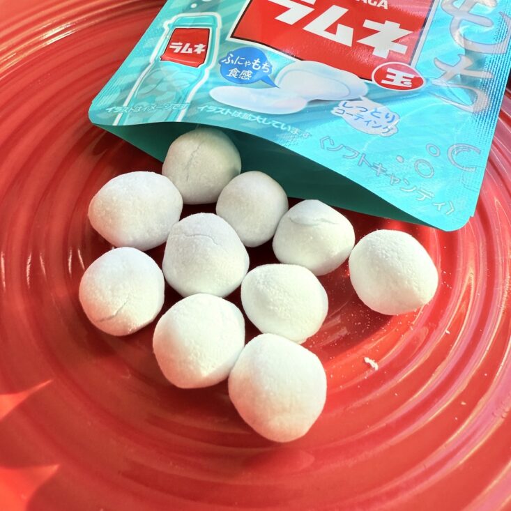The next snack we received was definitely unique. These soft, marshmallow-like balls were super chewy and had a fizzy cola-flavored center! Surprising and unexpected, they were fun to try—but just not our favorite.