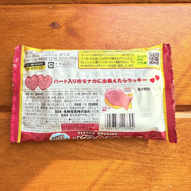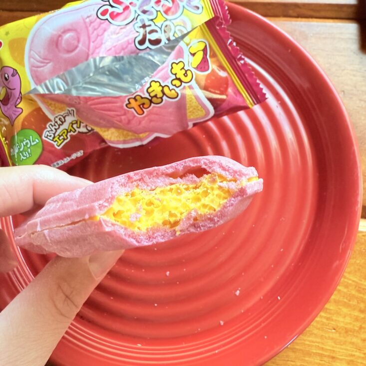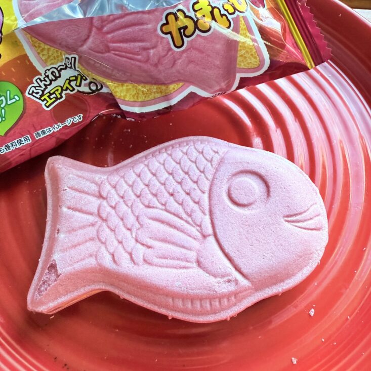 While I consider myself an equal-opportunity snack lover, this sweet potato fish just wasn’t my favorite. With a plain wafer exterior and sweet potato cream inside, it was definitely fun to look at—the embossed fish scales were a cute touch—but the flavor fell a little flat for me. The kids weren’t too impressed either, but it was still fun to try!