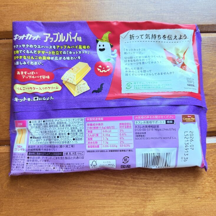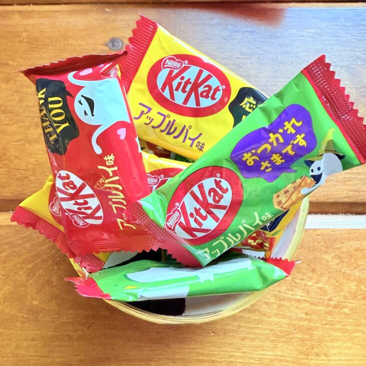One of my favorite things about the TokyoTreat box is that they always include a large bag of specialty KitKats. This month's flavor was perfectly in sync with the fall season—even the packaging featured cute little ghost clip art! Apple pie is definitely a fall favorite here in Minnesota, and these KitKats captured the warm cinnamon flavor of pie with an interesting apple twist. The white chocolate coating gave them a unique taste—not quite like traditional apple pie, but still reminiscent of it in a fun and creative way. One small downside: it's been unusually warm in Minnesota (around 80 degrees, which is pretty much unheard of this time of year), so our chocolates melted a bit. Although they hardened back into some funky shapes, the flavor wasn’t affected at all!
