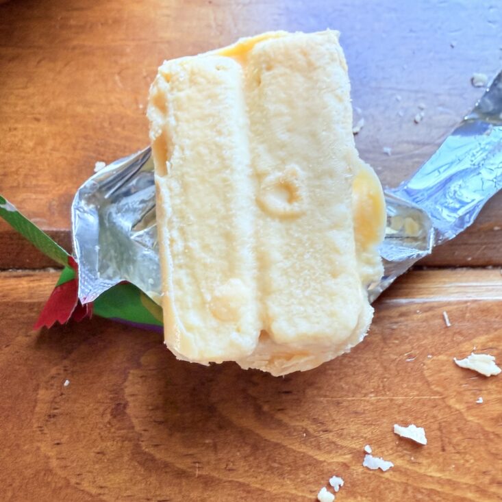 The next item I received was a pumpkin cracker. This tiny, thin snack had a subtle pumpkin flavor with a nice salty finish. The texture was a bit like styrofoam, so it wasn’t anything to write home about—but it was still fun to try!
