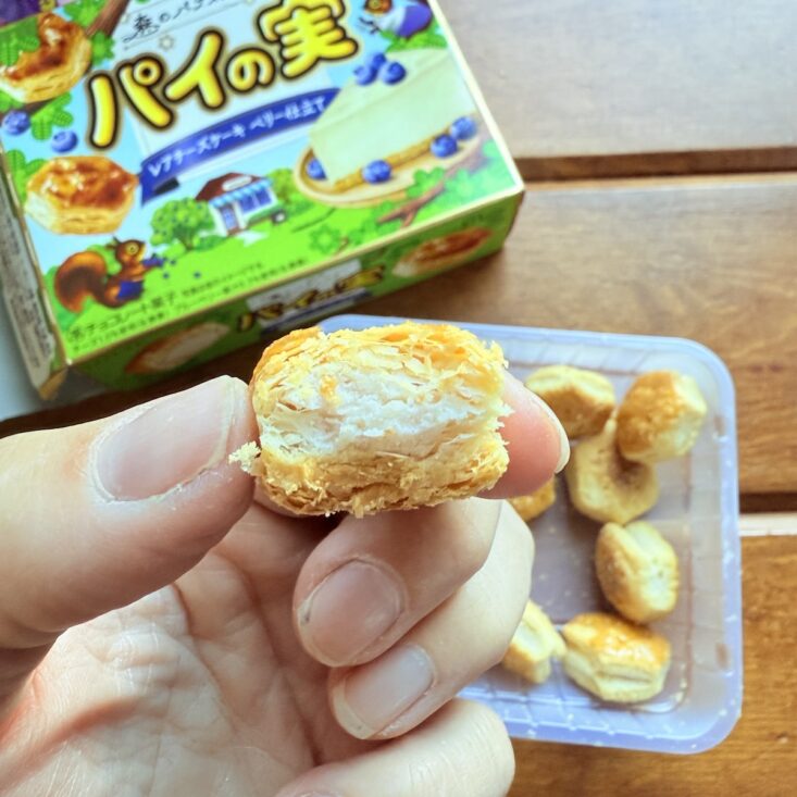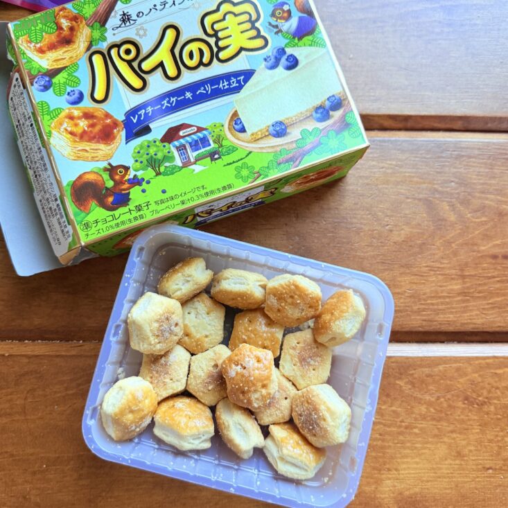 I love a generously sized snack, and this one takes the cake—well, pie, I should say! This delicious treat comes in a large plastic tray filled with tasty, pentagon-shaped pies covered in a flaky crust. Sweet and crisp on the outside, they're filled with a blueberry cream on the inside, making for the perfect bite-sized snack. My son isn’t usually a fan of cheesecake (as pictured on the package), but he absolutely loved these pie bites. A big win for us!