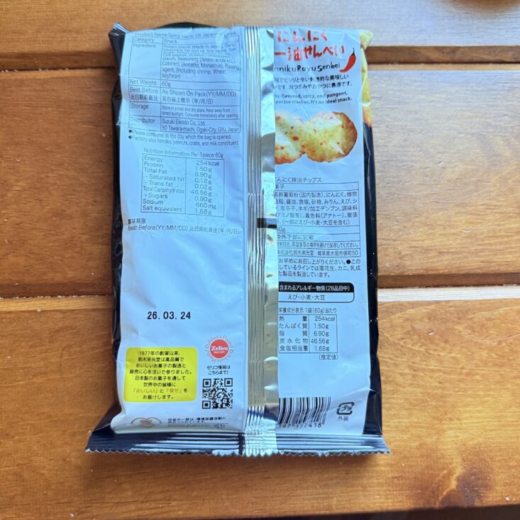 This box had been pretty heavy on the sweets up until now, so Charlie was especially thankful for something a bit more on the savory side. This next snack featured an adorable onion on the packaging and was filled with a generous amount of garlic chips. Crunchy and packed with a bold shrimp-garlic flavor, both of my kids loved them—even though one of them insists they hate shrimp! They were excited there was so much in the bag and ended up dividing it up to bring to school as a snack—and to show off to their friends, of course. Personally, I’m not a shrimp fan and didn’t care for these chips, but I’m happy the kids enjoyed them!