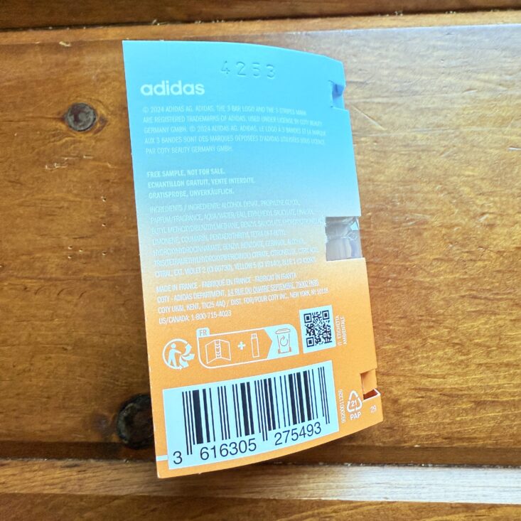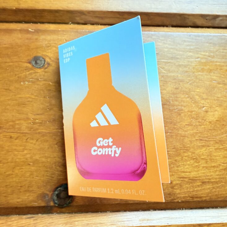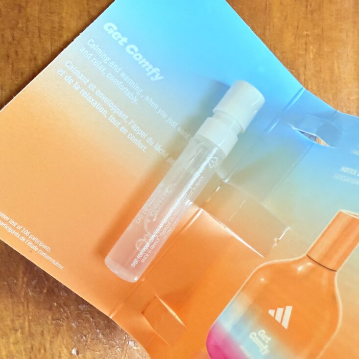 The next item I received was a sample of Adidas perfume. This "Get Comfy" spray features notes of vanilla and mandarin, creating a scent that’s both calming and warm. Adidas isn’t a brand I typically associate with fragrance, but honestly, I do like this perfume. It has decent longevity—I sprayed it on my sweatshirt in the morning and could still catch a hint of it by evening. Overall, this is something I could see myself wearing daily, and I might just pick up a full-sized bottle.