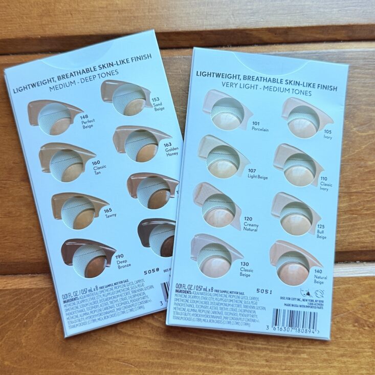 I’m not usually a fan of foil samples, but I did enjoy receiving this CoverGirl set because it allows me to find the perfect shade throughout the year. Another fun aspect of the set is that you can mix some of the shades to create a custom match that’s just right. While it can be a little messy to use, it’s great for shade matching and makes it easy to adjust when I get my summer tan on!