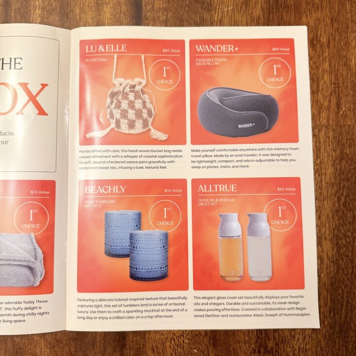 In the first category, there were eight different options, with retail values ranging from $30 to $160. As I mentioned above, I received a curated box, so I didn’t get to choose—but I did end up with one of the lower-priced items. The $50 packable duffel bag I received is made by a reputable brand and is considered eco-friendly. Constructed from reinforced nylon, this 22-liter bag folds neatly into its own pocket and is perfect to keep in my car for storage, shopping trips, or overnight stays. Overall, I think the quality and size are decent, though the $50 price point feels a bit steep. Honestly, though, had I been given a choice, I probably would have picked the duffel anyway, as it’s the item best suited to my current season of life.