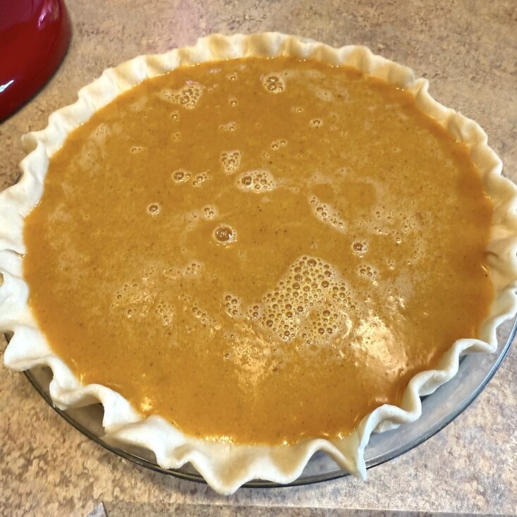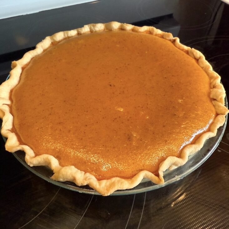 While I’d already sold all of our squash, I still had a few pie pumpkins left—so we made a pie! My new set of measuring cups was a hit, and I was so happy to have received them.