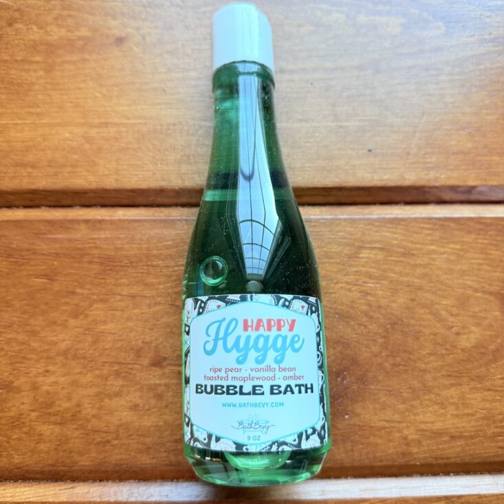 While bath bombs are my favorite, I still enjoy a traditional bubble bath from time to time. This month, we received a lovely bottle of “Happy Hygge” bubble bath. Featuring notes of ripe pear, vanilla bean, toasted maplewood, and amber, this musky blend has a warm, cozy scent that’s incredibly relaxing. It truly smells like pear cider and has me craving a delicious drink to pair with a hot bath!
