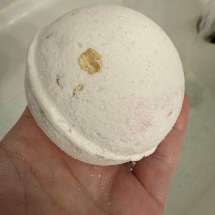 The second bath bomb I received was a lot less colorful than the first, but created a creamy, silky bath like no other! Utilizing honey, creamy milk, and warm oats, the scent of this bomb was a lot less dramatic than the apple cinnamon version, but was still much appreciated. With flecks of oats packed into this fizzy, a warm, soothing oasis was created. Truly, my skin was left extra soft and silky, and the subtle scent was a perfect addition to a pretty stressful Thursday night!