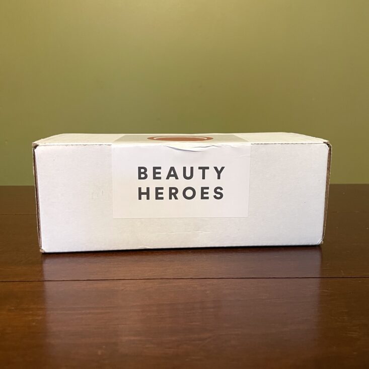 The monthly Beauty Heroes delivery comes in a white box with a red-dotted sticker sealing it. Inside, our products of the month fit perfectly with the brown crinkle paper needed for it to arrive safely.