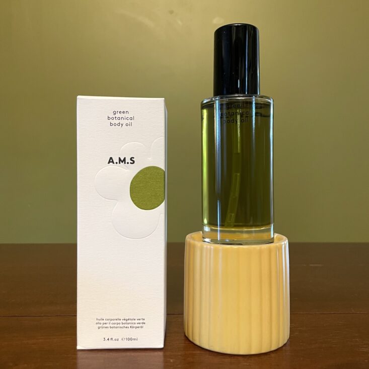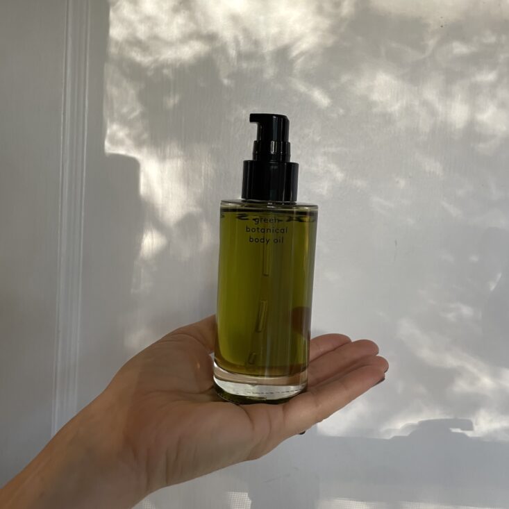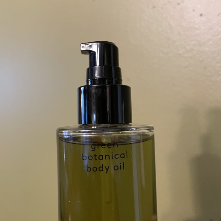The citrusy fir scent is so good I want to drench myself in this stuff. It's a very absorbent oil, and I found that I needed to use lots of pumps to cover my legs; less when applying it to the more delicate skin of my chest and arms. Absolutely divine.