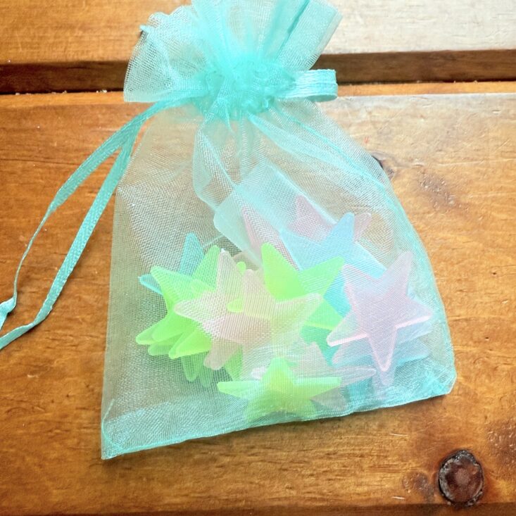 The last item Charlie received was a pouch of glow-in-the-dark stars with sticky tape. These were super popular when I was a teen, and Charlie loves them just as much. For now, he has them sitting on his dresser glowing, since I’m a little hesitant to stick the tape to his ceiling due to past experiences. Overall, though, this was a great inclusion that fit the theme perfectly!