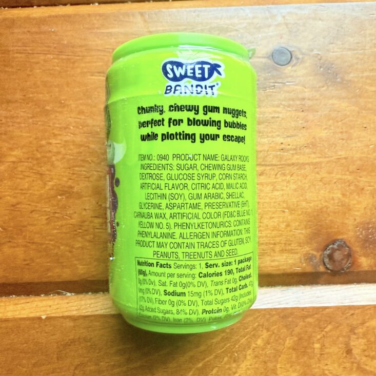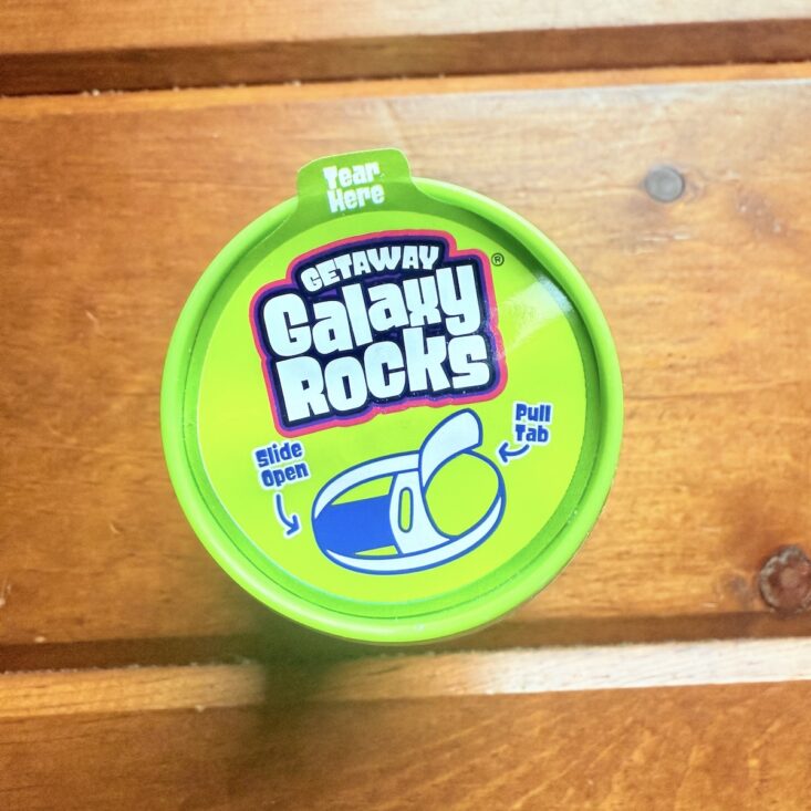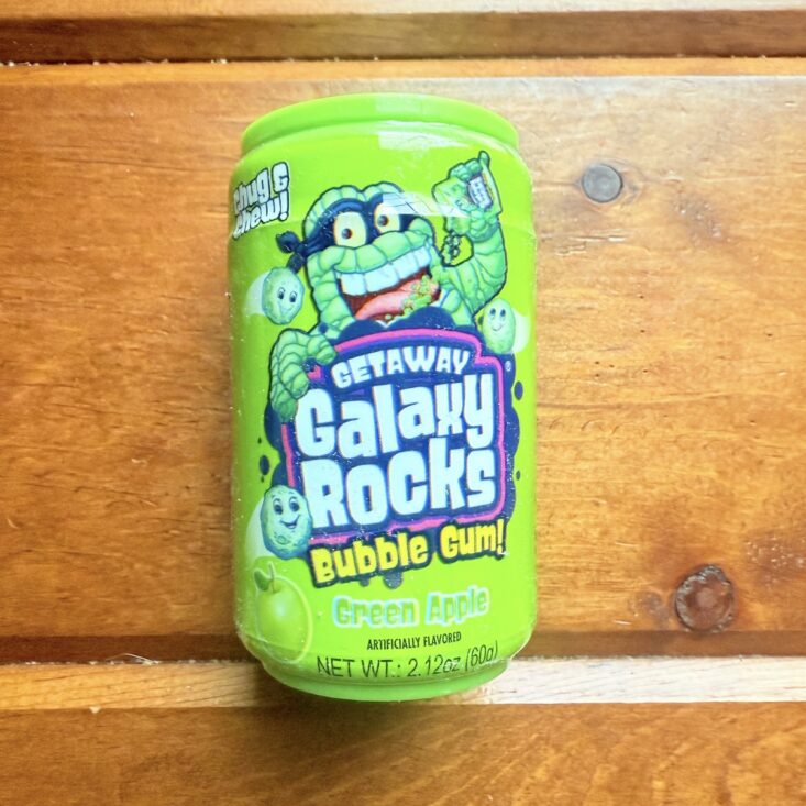 The first item we received this month was definitely a favorite! This little pop can–style gum container features a slide-top opening and is filled with small, green, rock-shaped gum pieces. Bright green in color, they have a fun sour apple flavor and are so enjoyable to chew. While the flavor doesn’t last very long, Charlie thought this was a hoot and carried them in his backpack for an after-school treat. We love snacky inclusions like this!