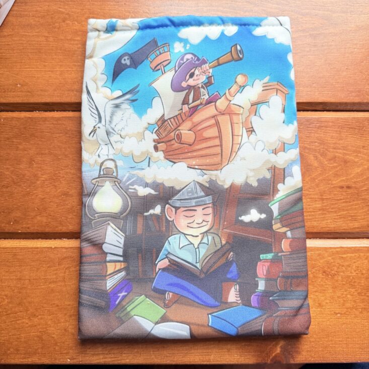 Charlie loves toting his books around, but ends up bending the cover, spilling on the pages, or losing it in his backpack. That all stops with this thick, durable, book sleeve. With a brightly colored pirate and reading illustrations, this sleeve can fit books or tablets, which makes it fit into this digital book theme very well. We don't own a tablet, so books it is! While protecting our current book, this sleeve also looks super cool and is easy to lug around. A great inclusion!