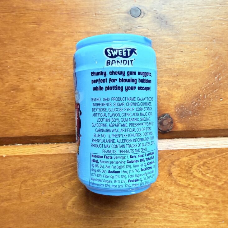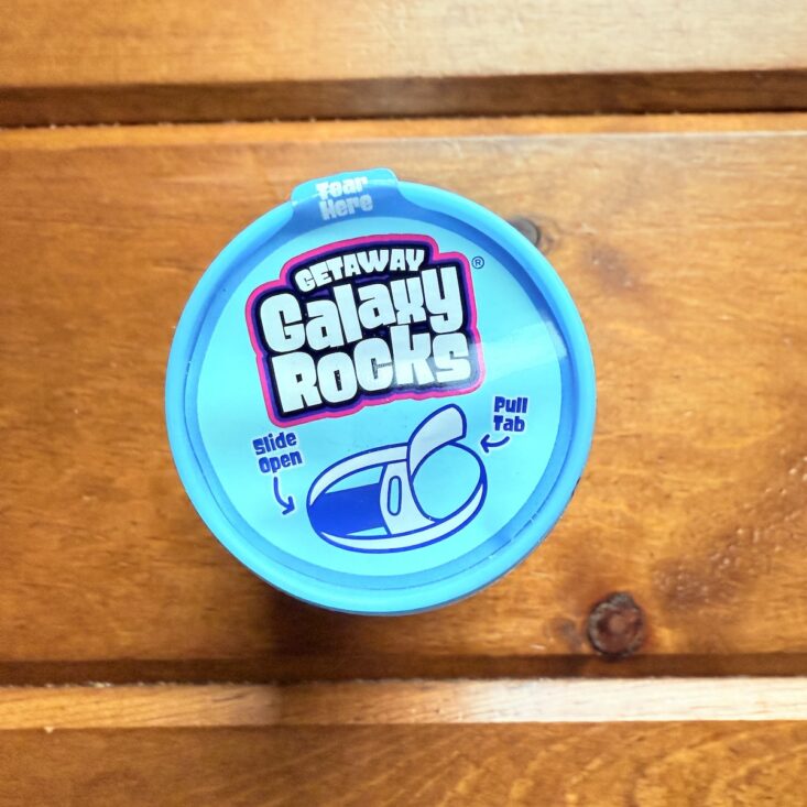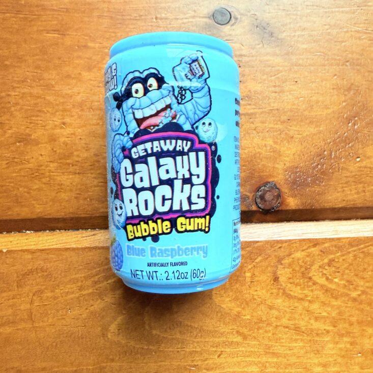 The first item we received this month was definitely a favorite! This little pop can–style gum container features a slide-top opening and is filled with small, blue, rock-shaped gum pieces. Bright blue in color, they have a fun blue raspberry flavor and are so enjoyable to chew. While the flavor doesn’t last very long, Hank thought these were great and carried them in his backpack for an after-school treat. We love snacky inclusions like this!