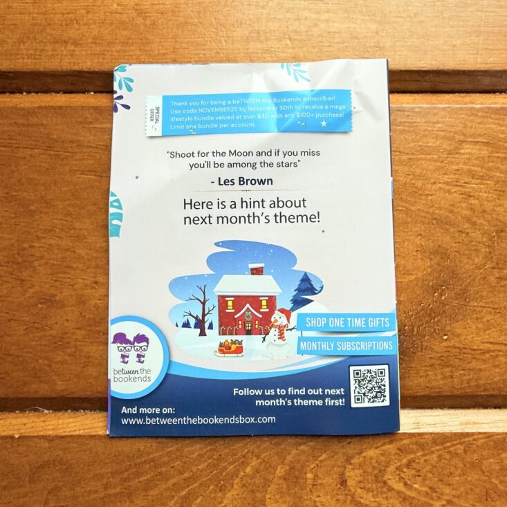 Each month, we receive a beautifully laid-out, color-coordinated pamphlet that describes all the items included in the box. On the back, there’s a featured quote from Les Brown: “Shoot for the moon. Even if you miss, you’ll land among the stars.” There’s also a fun little hint about next month’s theme—cozy winter, anyone?!