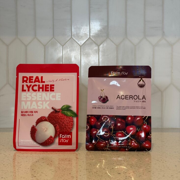 Farm Stay Real Lychee Essence + Visible Difference Acerola Sheet Mask – Retail Value $1.98