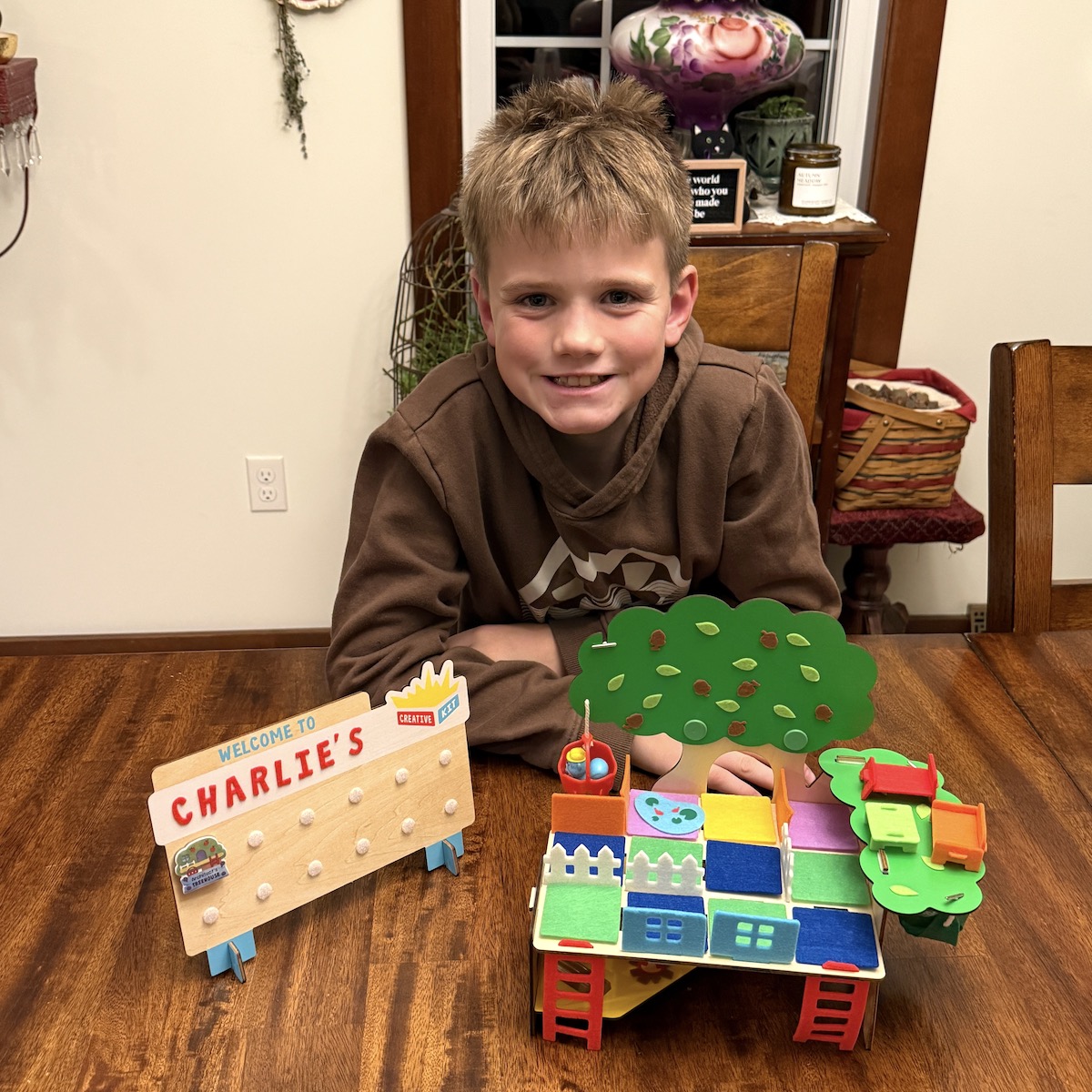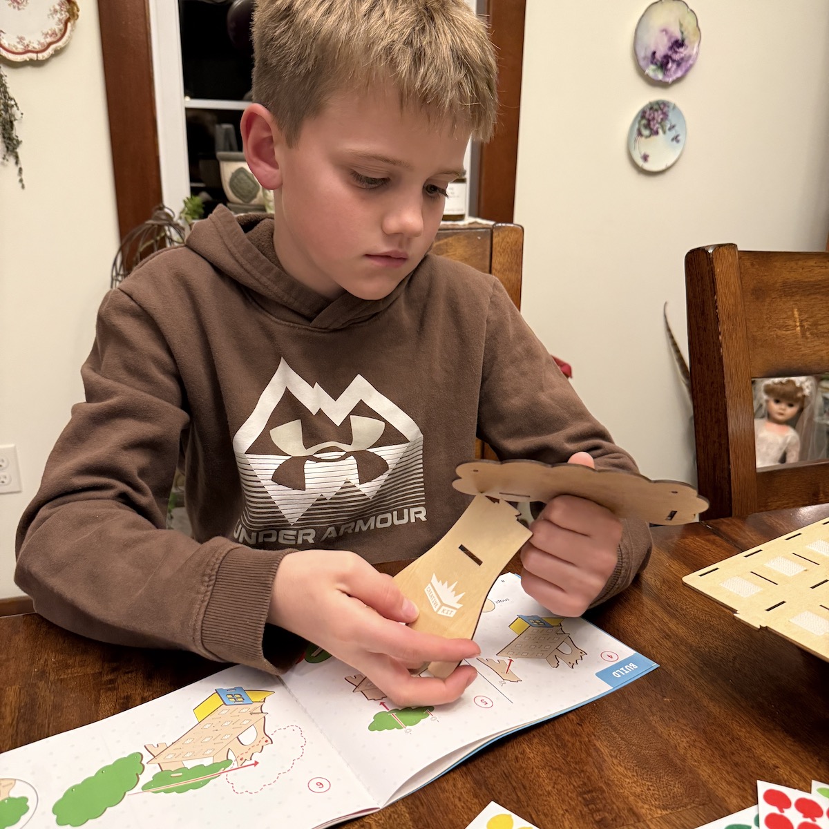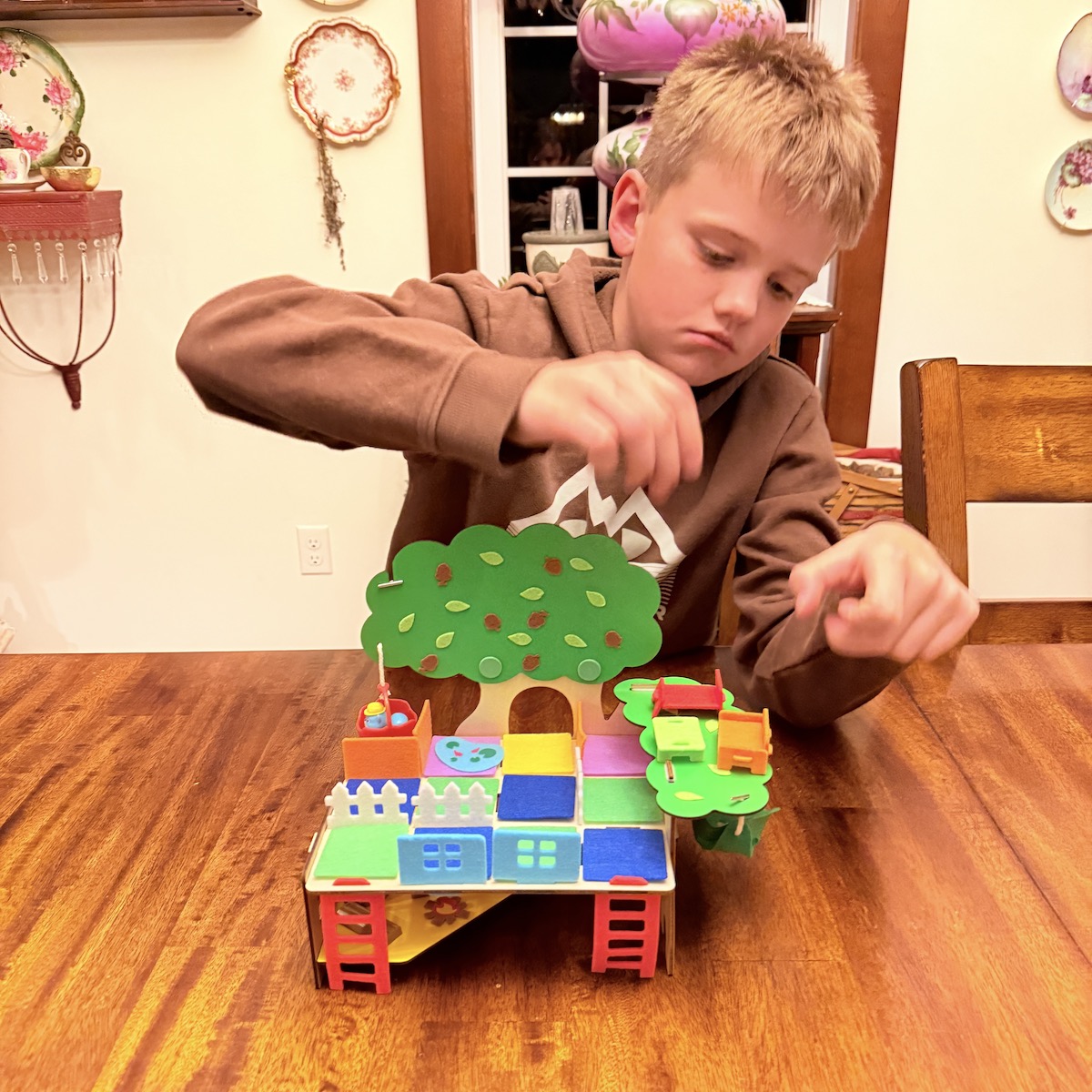 This kit was packed full of fun wooden pieces, felt stickers, accessories, and opportunities for creativity. Charlie was able to build the treehouse all by himself and loved that he could customize it however he wanted. He especially enjoyed the cute illustrations and all the extras included in the booklet. Everything fit together perfectly, and it was truly a stress-free experience for Charlie—which is always a win!
