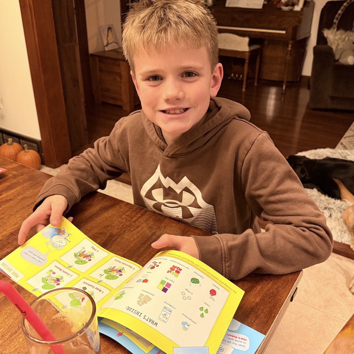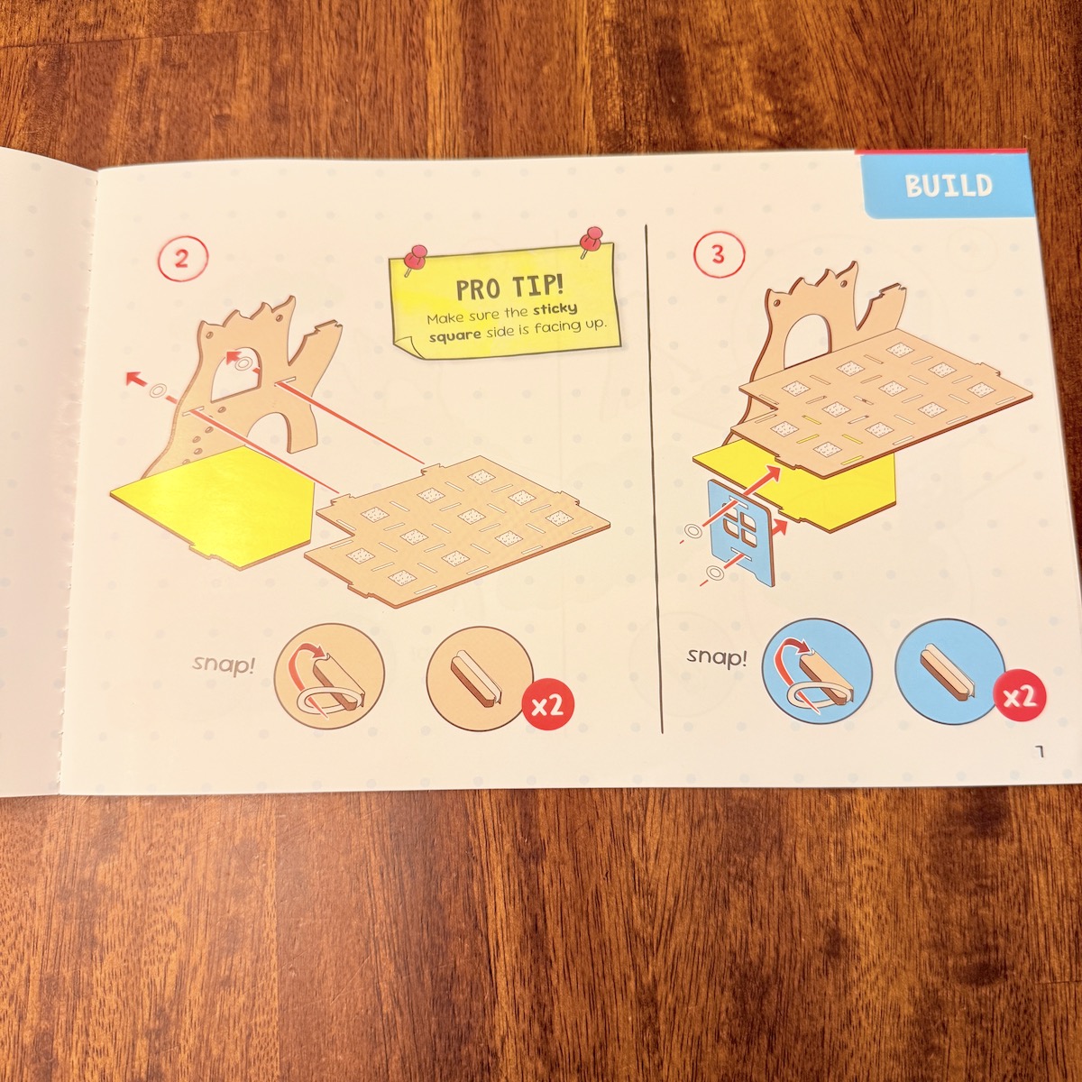 Starting with the box — this simple cardboard package looks pretty ordinary at first, but my son immediately spotted Mark Rober’s name and the CrunchLabs logo and was thrilled! The intriguing illustration on the front hinted at what was inside, and Charlie couldn’t wait to discover what creative adventure awaited him!