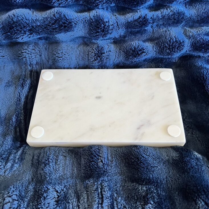 I have been looking for a cute catchall for my bathroom, so this choice felt kismet. This tray was cut from a solid slab of marble, and I love the weight of this beauty! It just feels expensive and adds a modern touch of elegance to our hodgepodge-styled bathroom.