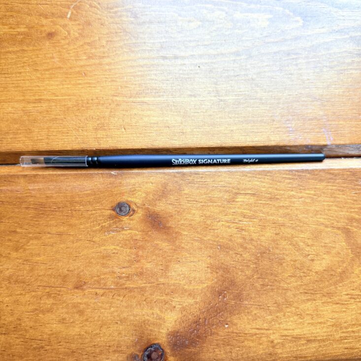 I always enjoy receiving new tools in my monthly SketchBox subscription, and this month’s was a great one! The SketchBox Signature Bright Size 4 brush is small enough for fine details yet large enough to cover broader areas. With its comfortable handle and square end, I felt I had better control than with many of my other brushes. It was perfect for this month’s peacock tutorial—so versatile that I didn’t even need to reach into my brush collection for any backups!