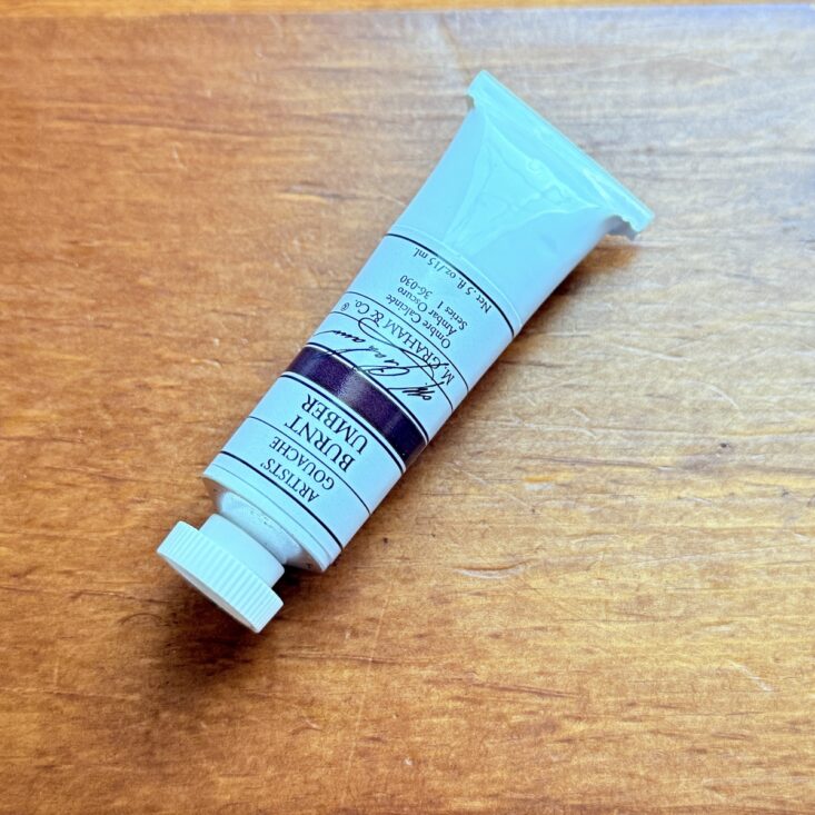 The next item we received was another tube of gouache, this time from the brand M. Graham. The Burnt Umber hue was a beautiful addition and helped balance out the brighter colors from the rest of the set.