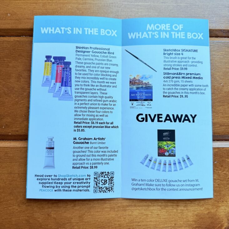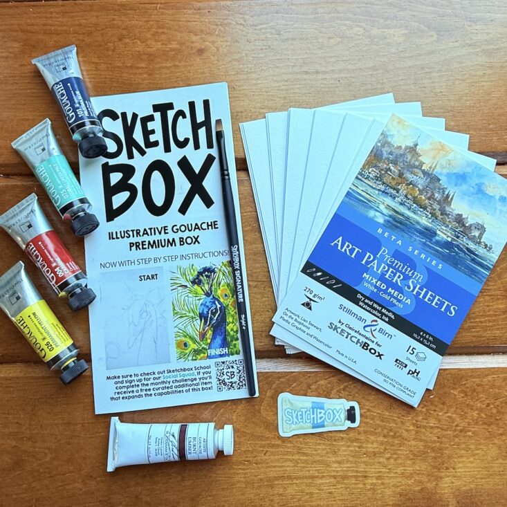 You can find all these items as a set in the Sketch Shop listed at the top of the page as the Illustrative Gouache Premium Box for $40. The included contents card had a $53.35 value, which is higher than the cost of the box and allowed me to discover products I probably wouldn't have discovered otherwise.