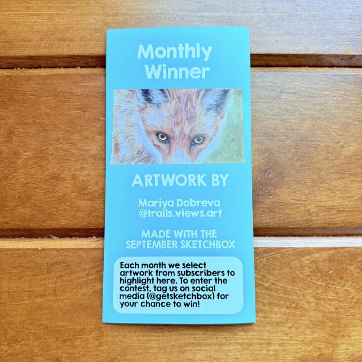 Instead of the traditional postcard, SketchBox has transitioned to a full pamphlet that showcases the box’s contents. It includes a QR code for SketchBox School—where you can learn how to use the materials—along with extra tips and information on how to enter a giveaway. This month even features a written tutorial! You’ll also find the winner of the monthly contest featured in the pamphlet, a spot that’s usually reserved for the shipping box. This month’s winning artwork, created by @trails.views.art is of a really beautiful red fox! Gorgeous in color and texture, Charlie loved this work so much that we had to check out Mariya's instagram page! Be sure to check her page out - she truly is talented!