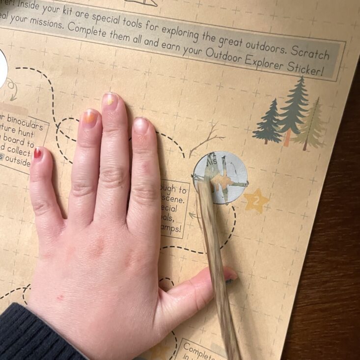 Our welcome scroll is perhaps the prized possession of our box. My kids love a treasure map, and this one came with a stick to use for scratch-off opportunities after you complete each of the box's activities. So simple, yet so brilliant.