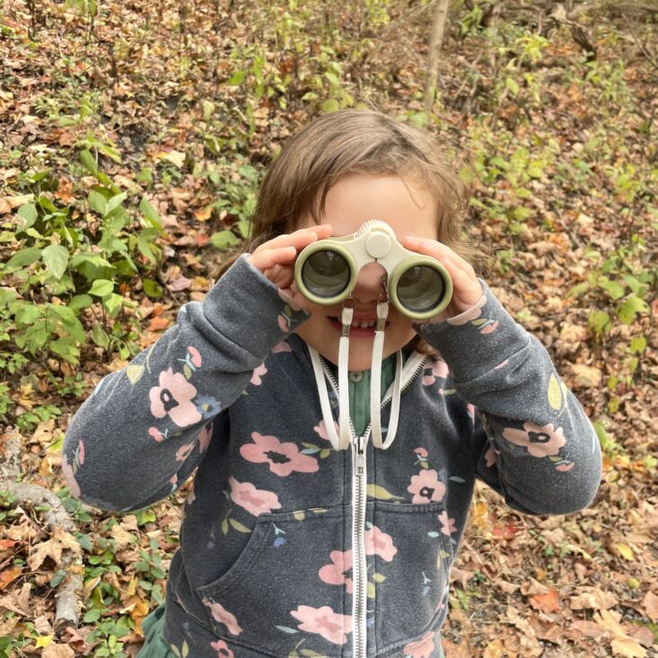 These binoculars were immediately taken onto the nearest trail to search for coyotes. While indeed coyotes can be heard in our woods at night, they've never been spotted during the day, so this was more an imagination-filled hike than an actual hunt. The binoculars made it feel more real, though.