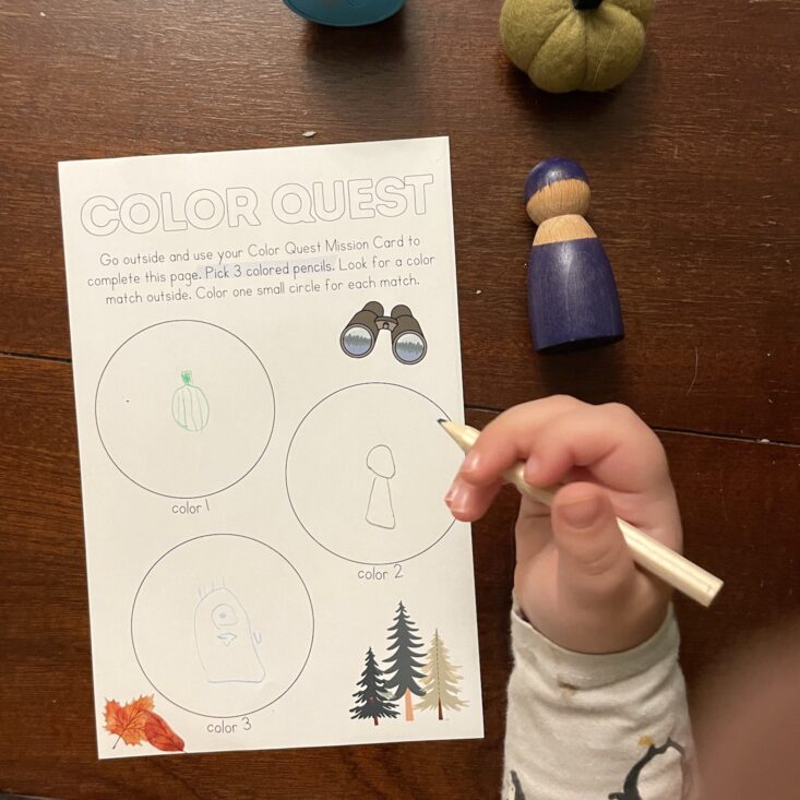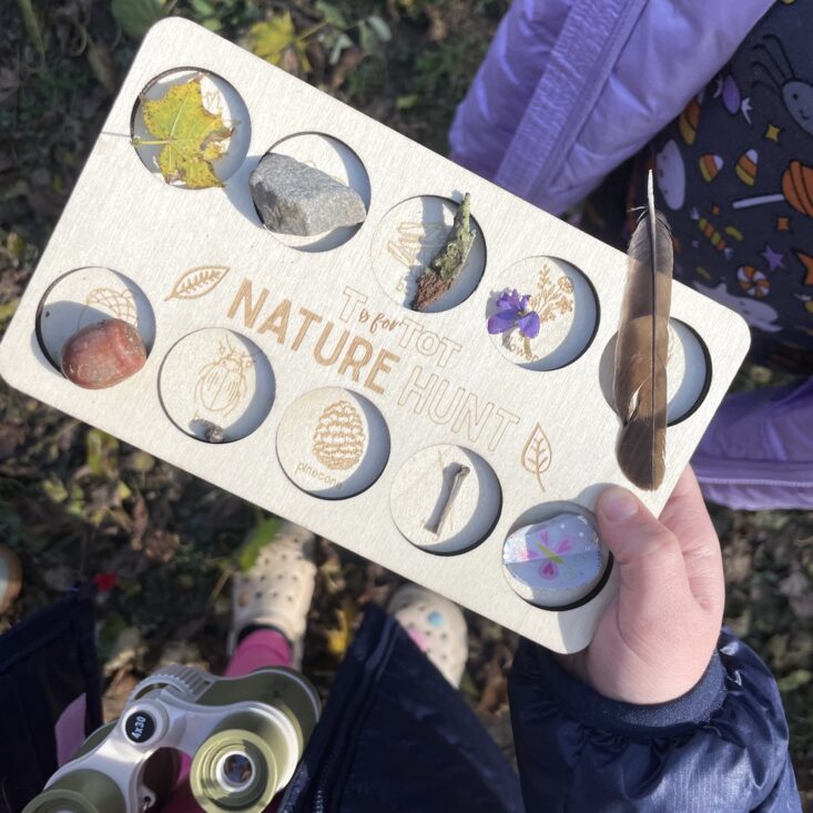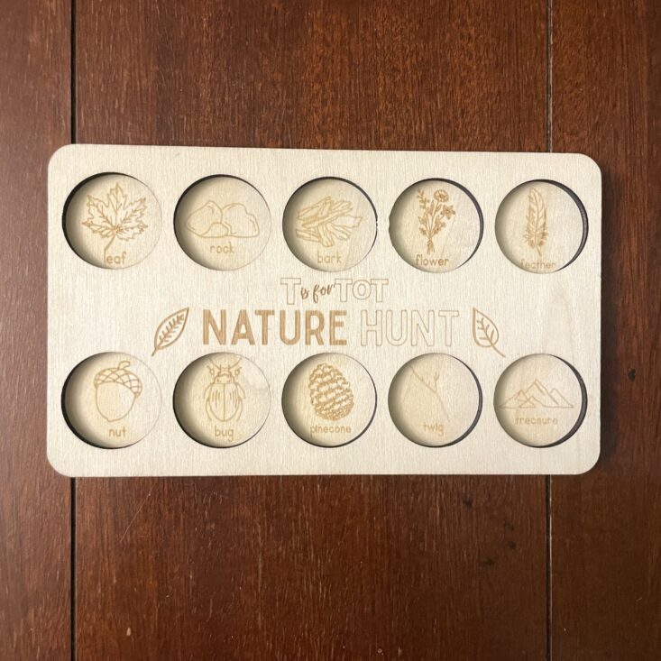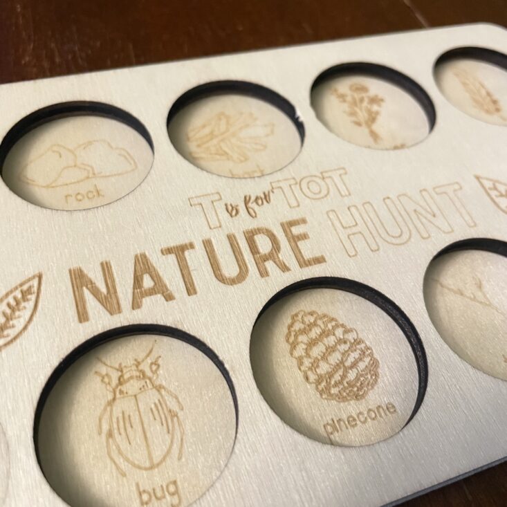 I noticed a nature search board just like this at our city's botanic gardens and made a mental note of it as a potential stocking stuffer. And then it arrived in our box the very next day! It's extremely cute. I love that it can be reused endlessly, and my kids enjoyed trying to find a leaf, twig, and rock tiny enough to fit in the small provided space. It's a bit shallow for a windy day search, so I ended up carrying it to keep our findings from blowing away. This will be a fun one to use through the seasons.