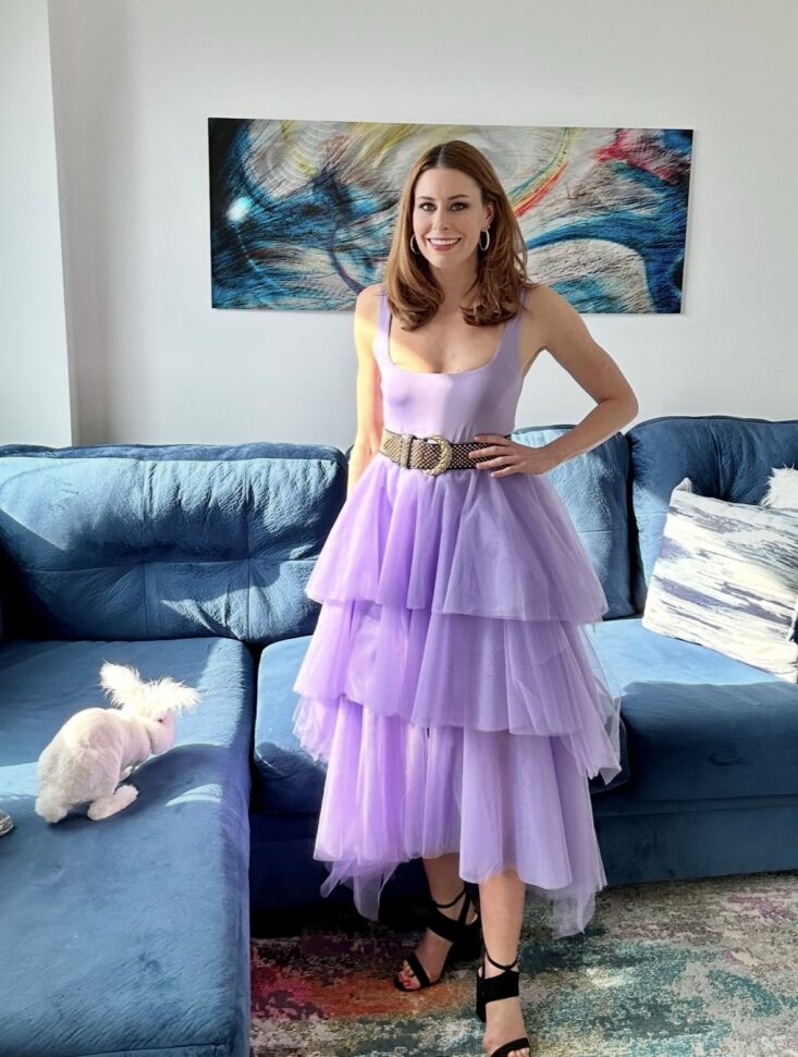 Instead, I locked myself inside my new apartment with Mr. HGL… and that’s where this column began. When MSA approached me about reviewing Rent the Runway and Armoire, I was thrilled. I had no idea RTR expanded from gala gowns to full, everyday wardrobes, and suddenly I had access to designers I had admired only from afar. It became the perfect distraction: a bright, whimsical escape from my traumatizing reality.