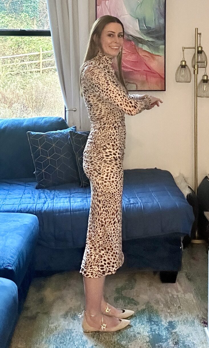 Size and fit: I rented a medium, and this stretchy dress hugged my body perfectly—sleek, smooth, and sculpting in all the right places.