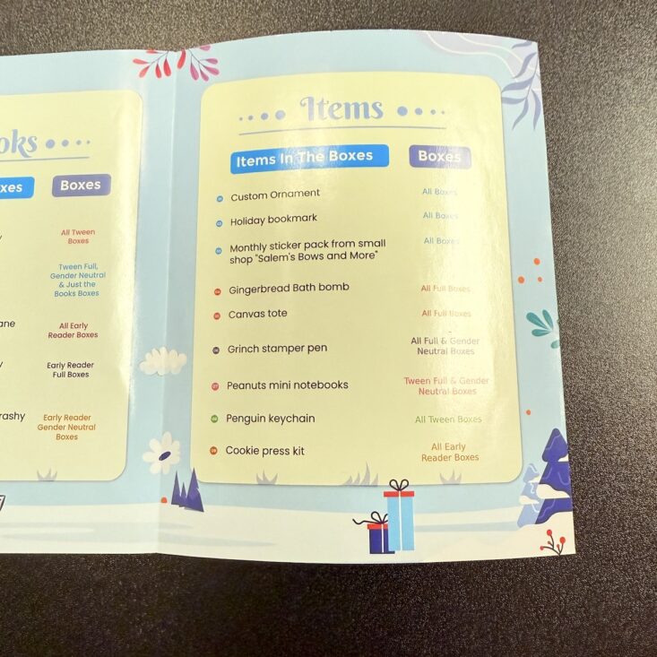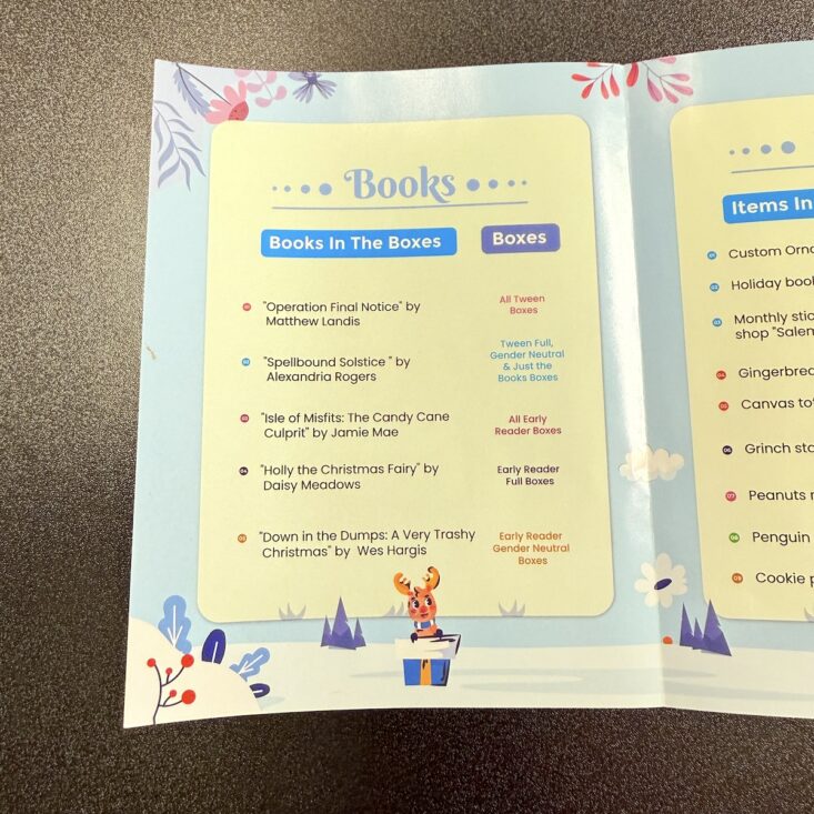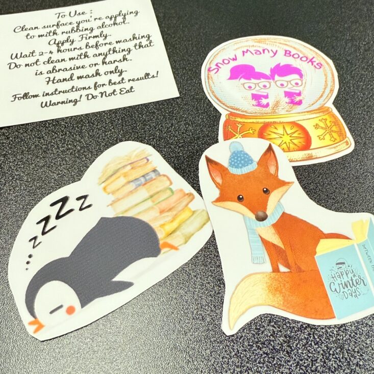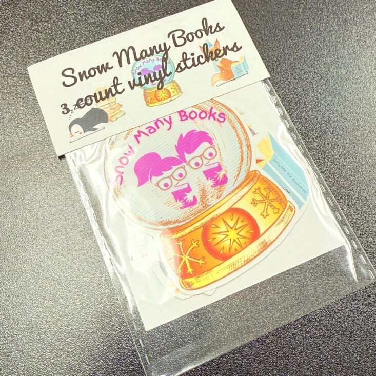 To start off the box, we look through the included pamphlet. It describes the month’s theme and lists the contents of every beTWEEN the Bookends version. This little booklet gives us a clear overview of what’s inside the box, along with a bookish quote, social media information, and a hint about next month’s theme. This month’s quote reads: “Even the strongest blizzards start with a single snowflake.” — Sara Raasch