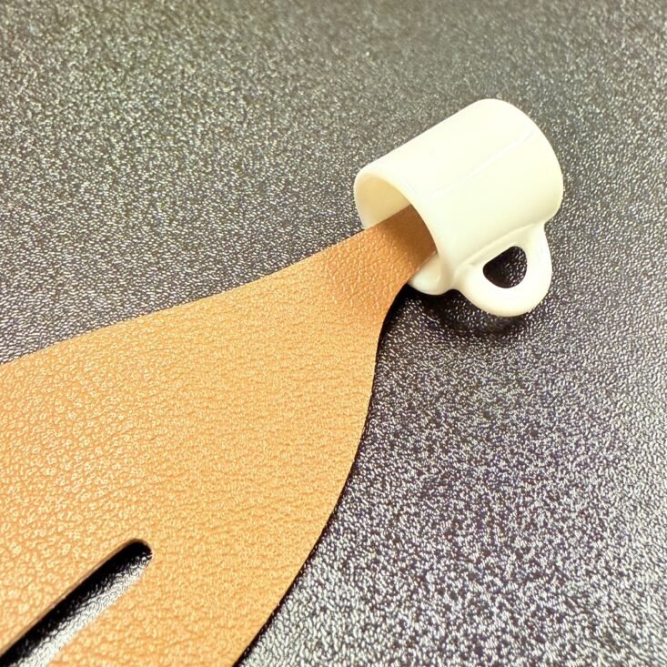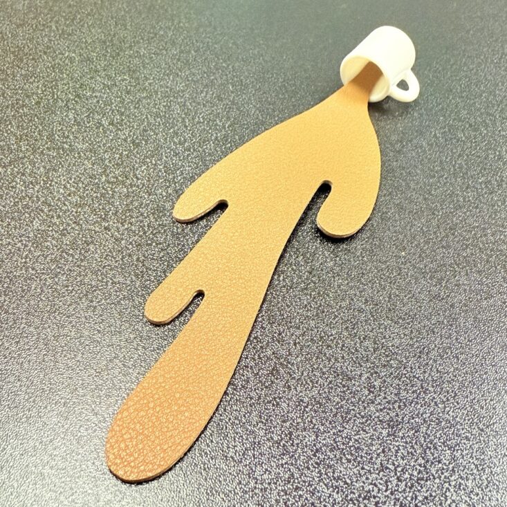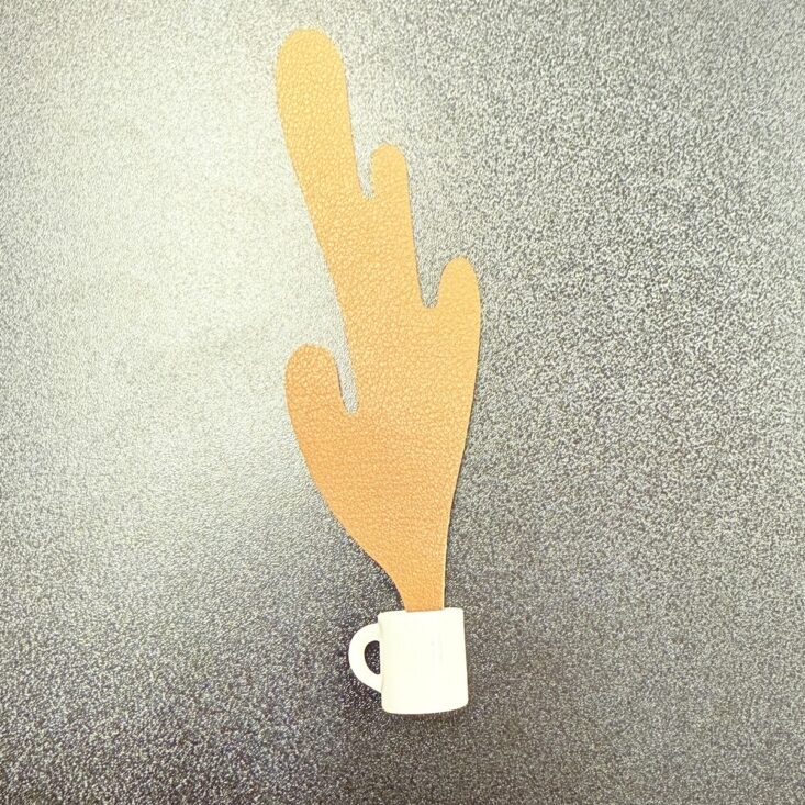 The next item we received was a really useful one! At first, we weren’t quite sure what it was supposed to be, but we quickly realized it was a holiday-themed bookmark. Designed to look like a spilled cup of hot cocoa, the tiny cup paired with the brown vinyl “spill” is seriously adorable. To use it, you simply place the vinyl piece on your page to hold your spot. Charlie is a hot cocoa addict, so this was the perfect inclusion for him—and it’s already saved his new books from being dog-eared!
