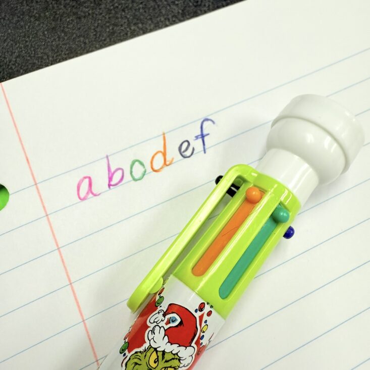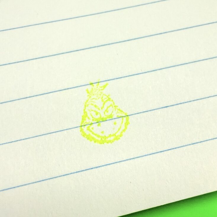 The Grinch is definitely one of my boys’ favorite Christmastime characters—Charlie even asked for a Grinch snow globe a few years ago! As a fun nod to the holiday season, we received a pen with six different ink colors and a lime-green Grinch stamp. It’s a great tool for writing all those holiday thank-yous, and it was a fun item that Charlie really liked and has already put to good use!