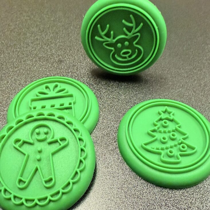 The last item we received was a cookie press kit. It came with a handle and four silicone shape presses—a reindeer, gingerbread man, Christmas tree, and present. The disks attach easily to the handle and can be pressed into the dough to create an imprint. I’m extremely behind this year and haven’t even started my cookie baking yet, but I plan to give these a test run when I make my sugar cookie dough. It’s a cute idea, and I’m hoping the designs show up well on the cookies… so I don’t have to frost every single one!