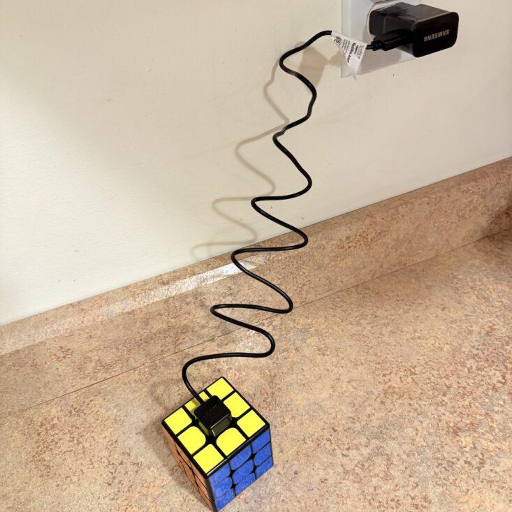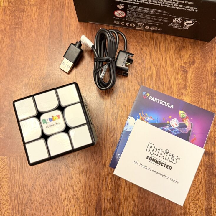 The first spoiler we received was a Rubik’s Cube Pro. This puzzle connects for charging and pairs with an app that shows you how to solve it. It’s really neat how it syncs with your phone screen while you’re solving and provides clues as it teaches you step by step. You can choose your difficulty level and even challenge other players!