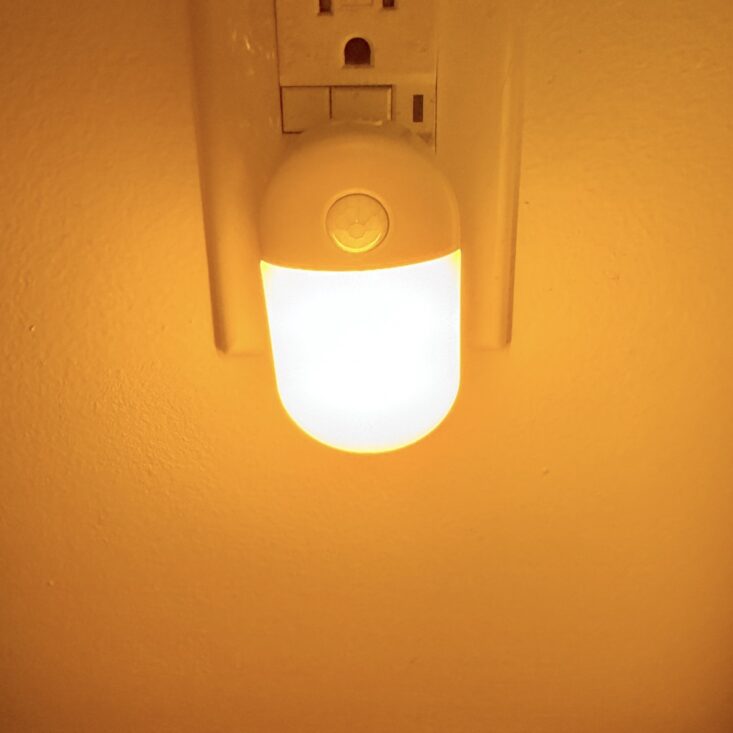Nightlights are something we use often in our house, but this one is much fancier than the others we currently own. This time, we received a Swanwick anti–blue light night light. It plugs in and can be set to on, off, or auto. When set to auto, it’s motion-activated and casts an amber pathway designed to protect melatonin levels and help maintain a healthy sleep rhythm.
