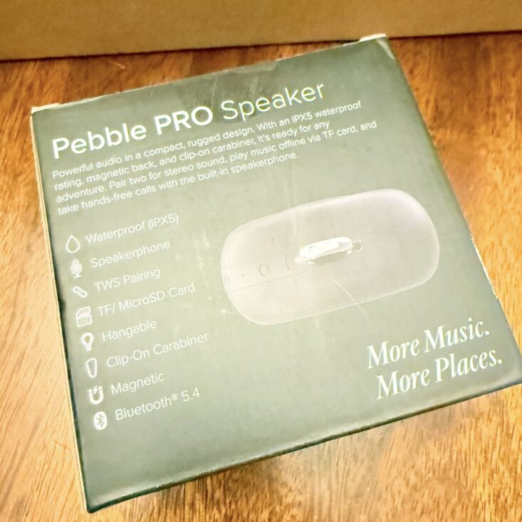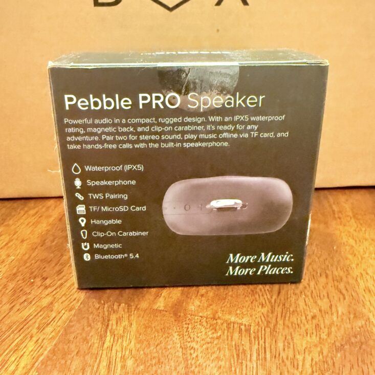 This month, we received a Pebble Pro speaker. This compact speaker is easy to pair, has an impressive volume range, charges via USB-C, and features both a magnetic back and a carabiner hook, making it easy to place just about anywhere. It’s also drop-proof and lasts up to five hours on a single charge. I can personally attest to the drop-proof claim—I accidentally dropped it in the kitchen, and it didn’t miss a beat!