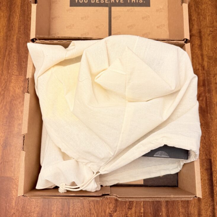 Just like the previous season BREO boxes, the winter edition came packaged in two sturdy cardboard boxes and a handy cloth sack. Everything arrived safe and sound, and I couldn’t wait to dive in! Side note—these cardboard boxes are perfect for wrapping gifts, and the cloth bags have been a lifesaver for hauling home dirty laundry from trips and conferences. In fact, mine is already packed and ready to go! Yay for reusable packaging!