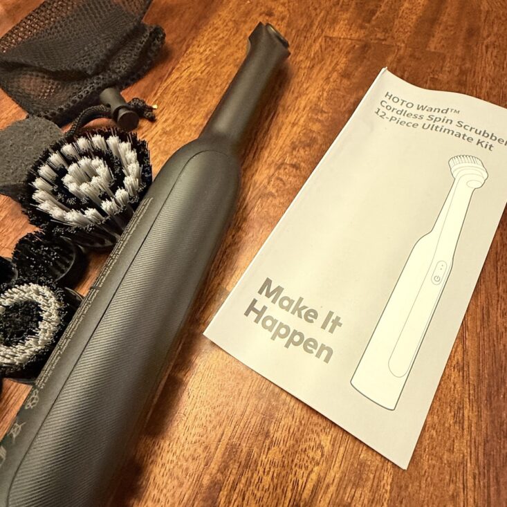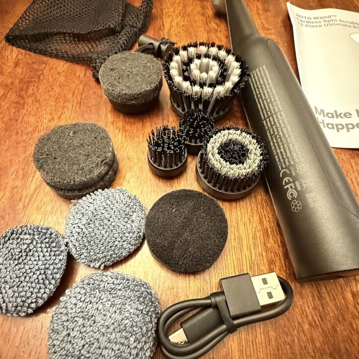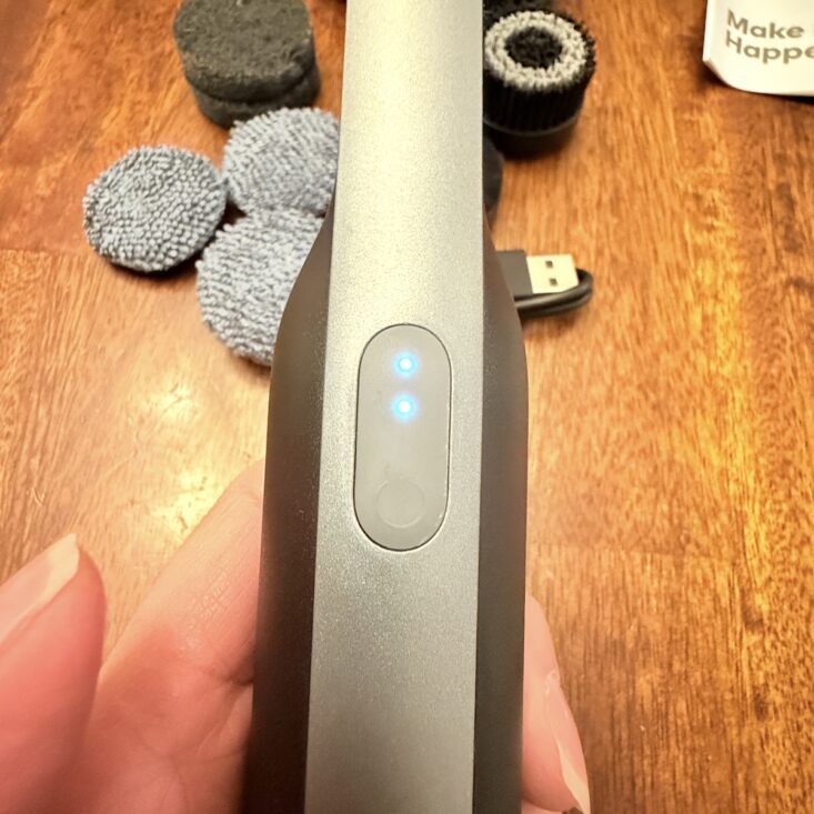 The second item I received was a cordless spin scrubber, and I was really excited about this one! Featuring multiple attachments, this rechargeable scrubber is waterproof and can clean just about anything. You can literally submerge it and clean underwater—it’s lightweight and surprisingly quiet. I’ve already used it in the bathroom with a mixture of vinegar and baking soda to tackle mineral buildup on my faucets, and it worked like a dream! This incredibly useful addition is helping me get my home in tip-top shape, and I absolutely love it.