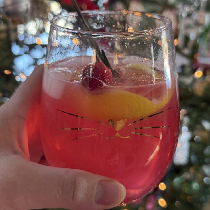 Christmas is almost here, and our family has been having so much fun making “mocktails.” It felt like the Cat Lady Box knew I needed some new fancy glasses, because we’d been drinking out of mismatched plastic ones! This set of stemless wine glasses features an adorable gold cat nose and whiskers, giving the perfect nod to cat lovers everywhere. Generously sized, they’re a bit larger than some of my other glasses, which makes drink mixing even more fun. Charlie wanted some homemade lemonade, so we created a cranberry lemon spritzer and added all the garnishes! Perfect for toasting and celebrating the upcoming season, this was a wonderful inclusion that I’ve already gotten a lot of use out of.