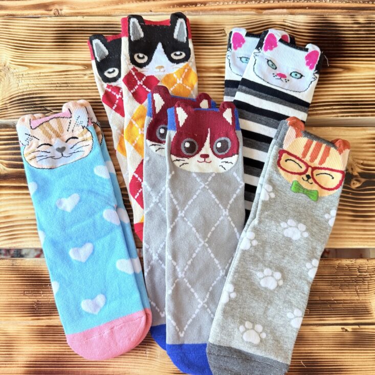 I really loved the wine glasses and thought they were my favorite item this month—but then I caught sight of this sock set, and now I’m having a hard time deciding which I like more! This set of five different pairs of socks is absolutely epic. Bold and colorful in both print and design, each pair features a different kind of kitty, and they’re all adorable. I prefer a thinner sock over a thick one, so these were exactly what I needed. They even have little ears that pop up above the cuff! I honestly don’t think it gets any cuter than these.