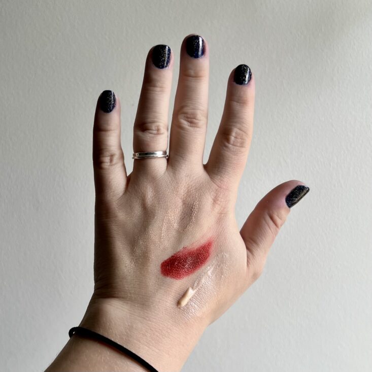 I have a drawer full of these creamy stains, and I rarely reach for anything else. The staying power is amazing! I also love the healthy glow finish. This product has emulsifiers like shea and kukum butters to keep the skin hydrated, happy, and healthy. This month's shade is a spicy red that mimics the look of red cheeks, fresh from the cold; it is lovely.