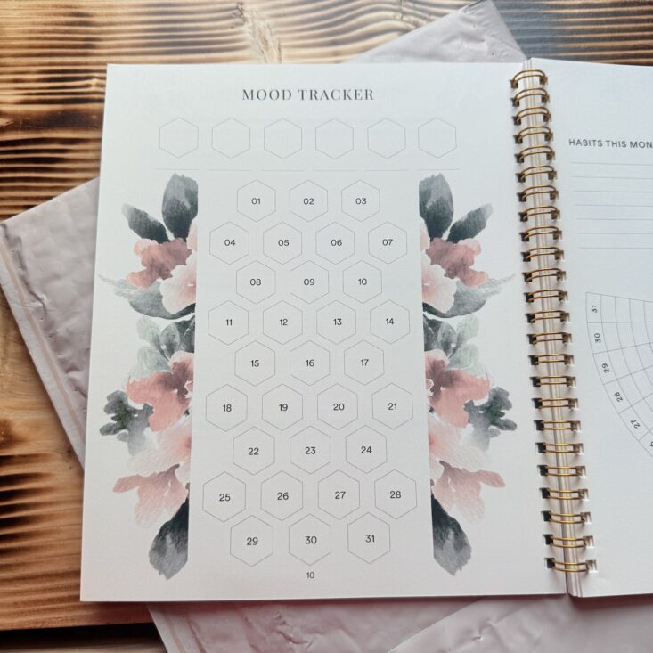 I typically tend to allocate about 15-20 minutes a day to this journal and flip from front to back reflecting, adding to, and processing what I have previously written. By the end of the month, my brain feels much more organized and stable. The beauty of this planner is remarkable, and the packable size means I can tote it around in my purse. Being extremely impressed with all aspects, I am really looking forward to discovering more about myself, all while staying organized and offering myself a little daily quiet time and important self-care.