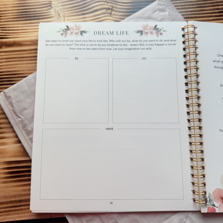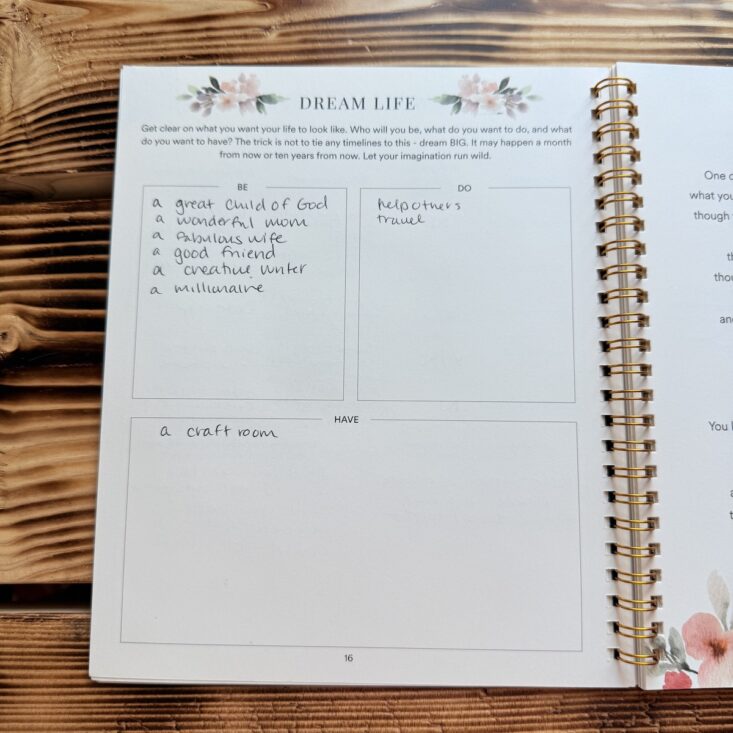 The next activity, titled "Dream Life," offers space to jot down the things I’d like to be, do, and have in my dream life. It’s a fun activity with endless possibilities, and I can’t wait to see where the future takes me.