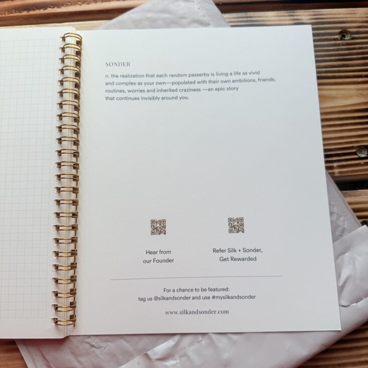 Every month, the Silk + Sonder creator, Meha, chooses a theme. Typically, we receive a welcome letter along with a definition explaining why each theme was chosen. For January, because it marks the start of a new year, we instead receive a yearly reflection page.